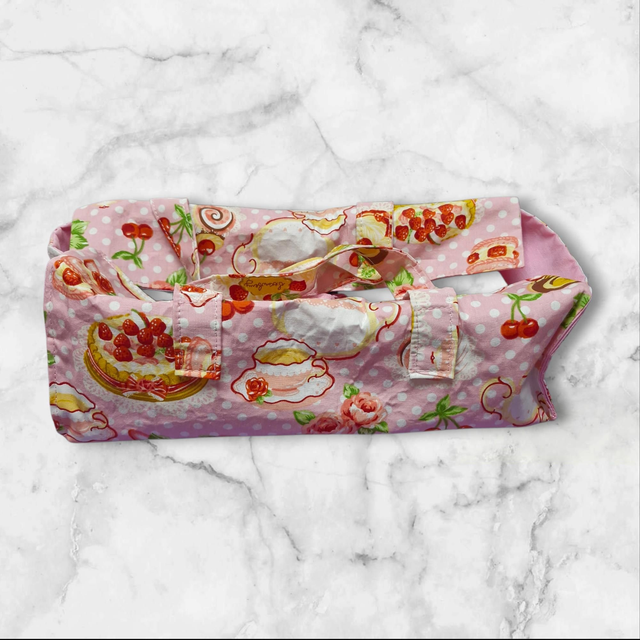 Transportez vos cakes et pâtisseries maison avec charme grâce à ce sac à cake en coton réutilisable, à la fois pratique et plein de douceur. Son joli tissu rose à pois, décoré de motifs gourmands (gâteaux, fraises, cerises), apporte une touche joyeuse et rétro à vos déplacements gourmands.